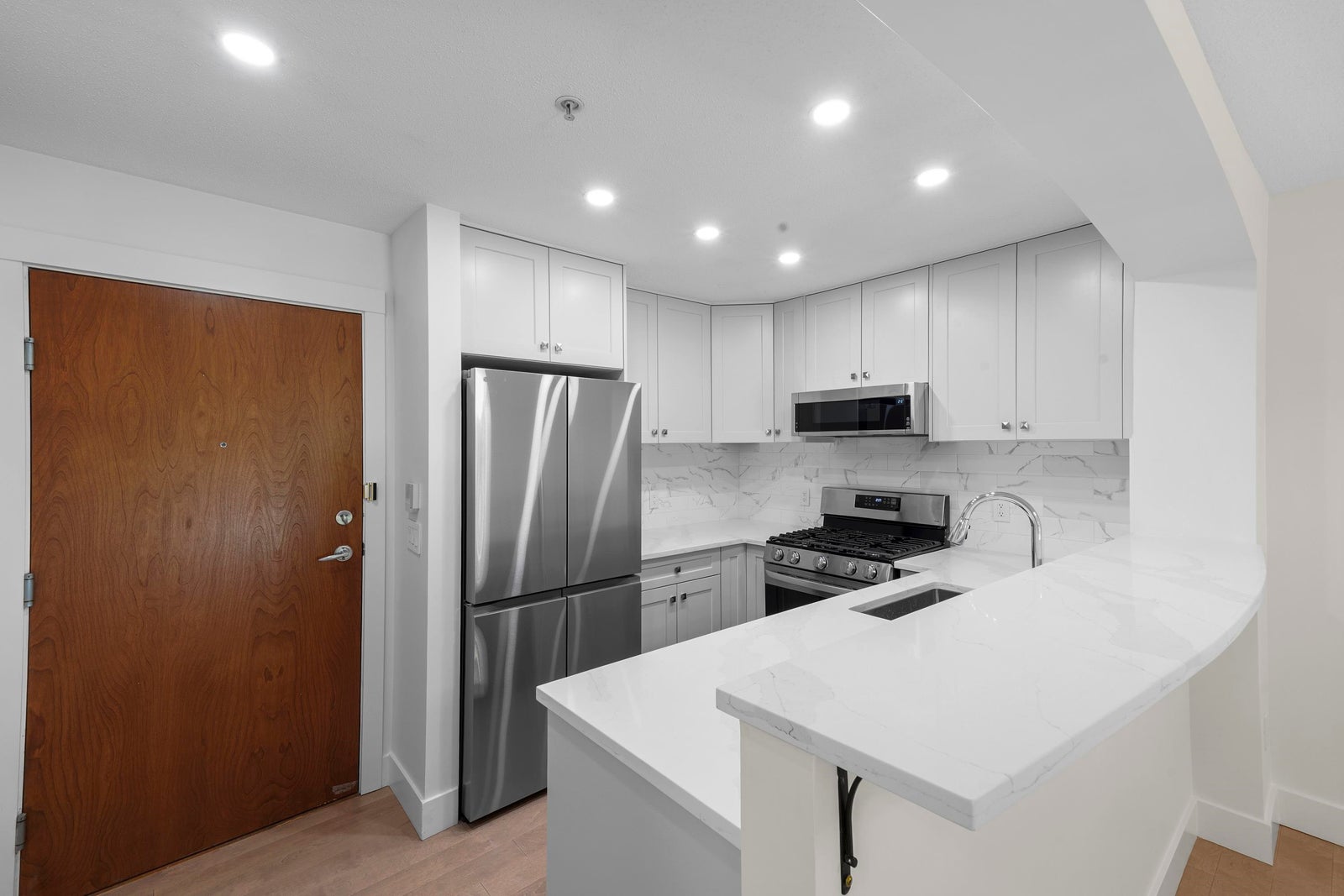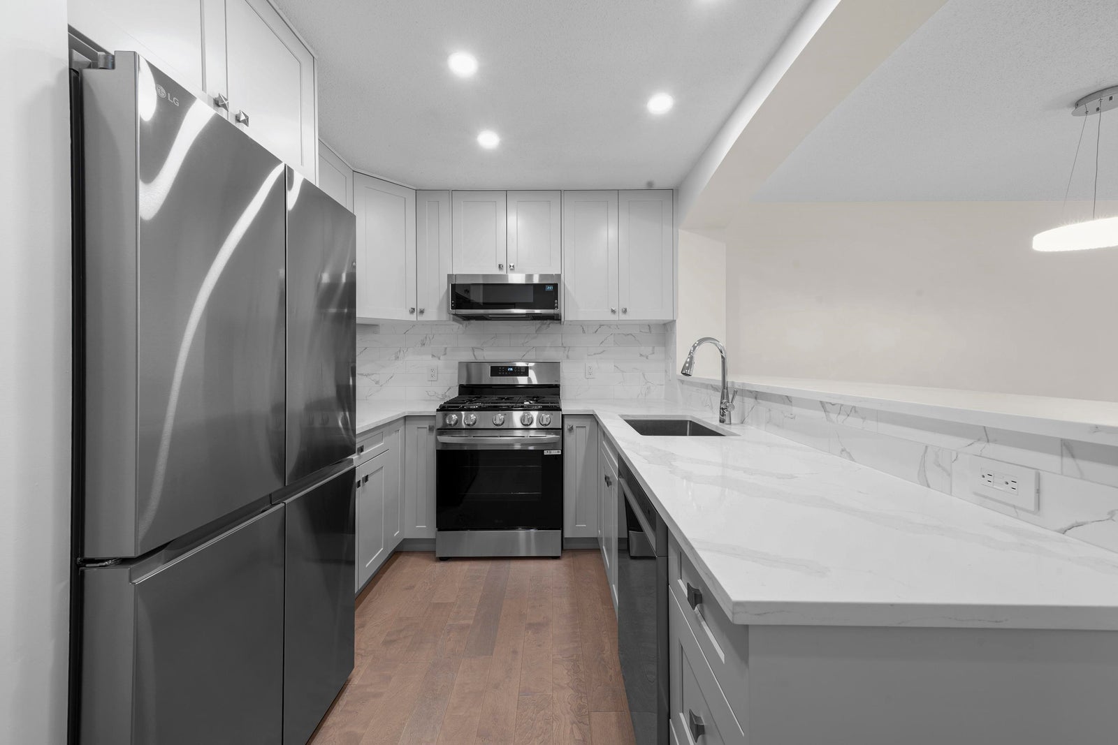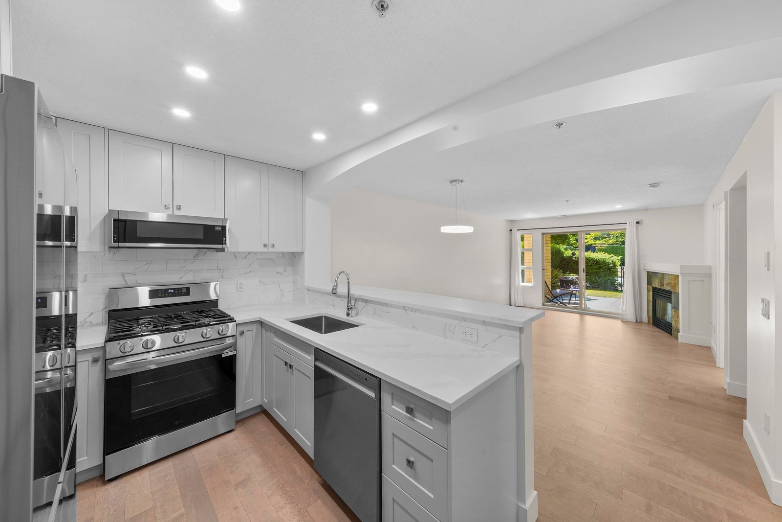 Fully renovated 2 bedroom, 2 bathroom modern condo at UBC! This stylish 860 sq ft ground-level unit features brand-new appliances, designer kitchen, updated bathrooms, wide-plank floors, fresh paint & sleek fixtures. The showstopper is the expansive 500 sq ft private patio—ideal for entertaining or serene outdoor living. Includes gas fireplace, in-suite laundry, 2 parking stalls, storage locker, and access to a bike room. Pet-friendly building in a peaceful, green setting. Steps to UBC Hospital, University Golf Club & Village shopping. A smart investment or perfect home base for UBC faculty, students or downsizers seeking tranquility in the city.