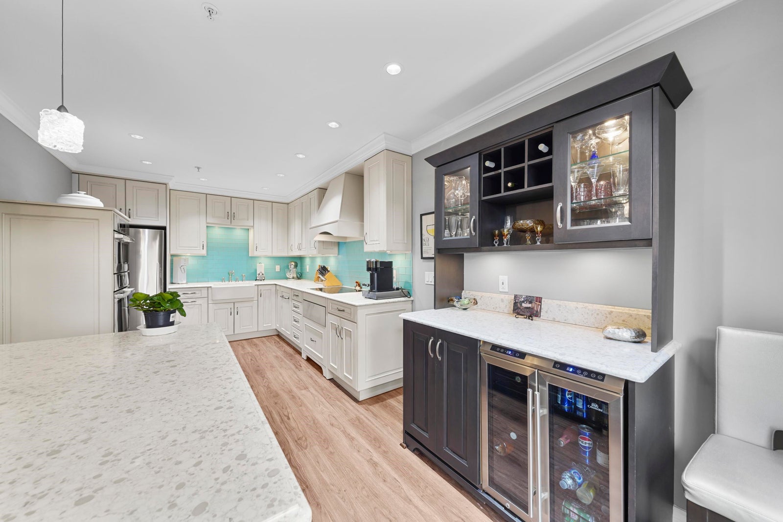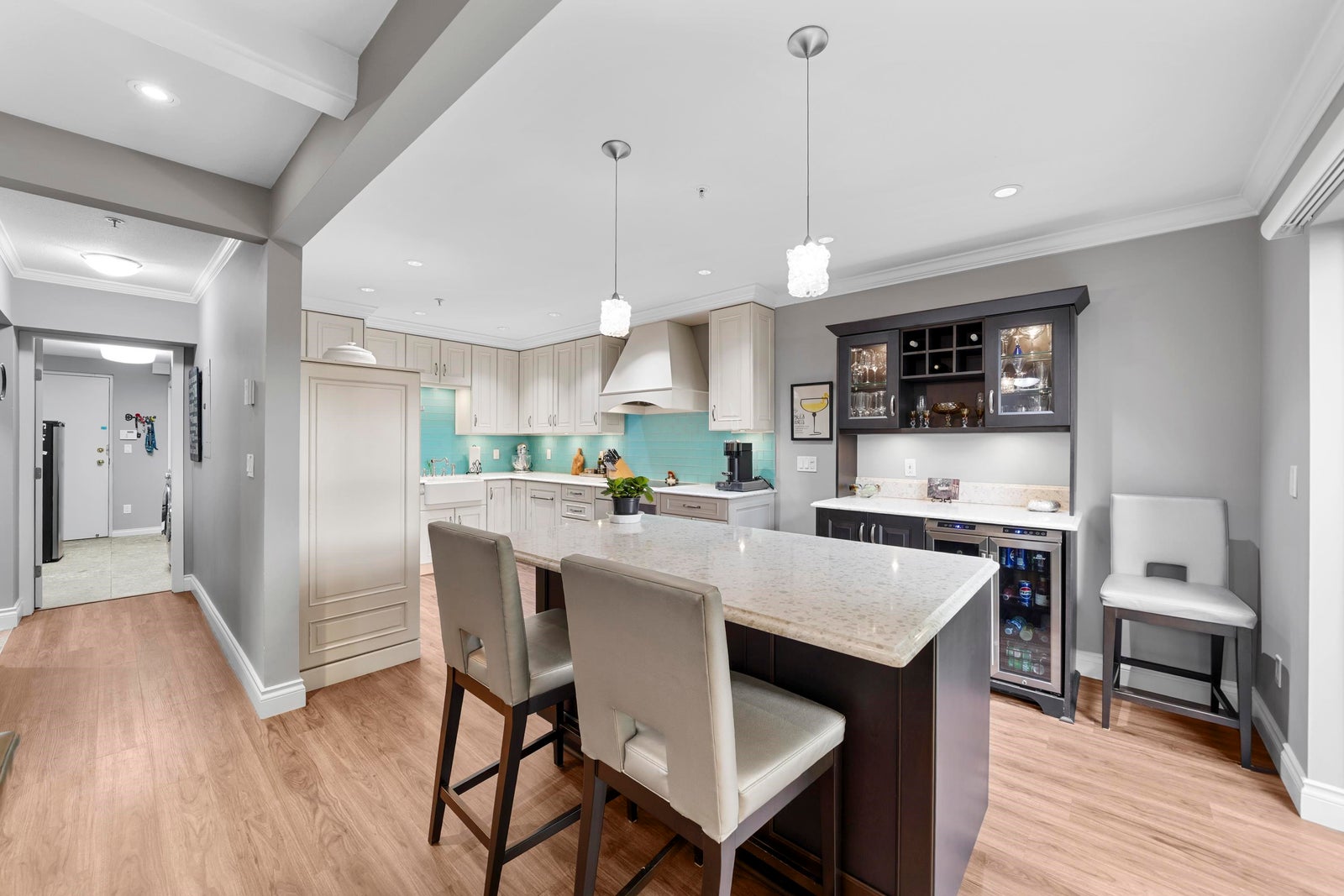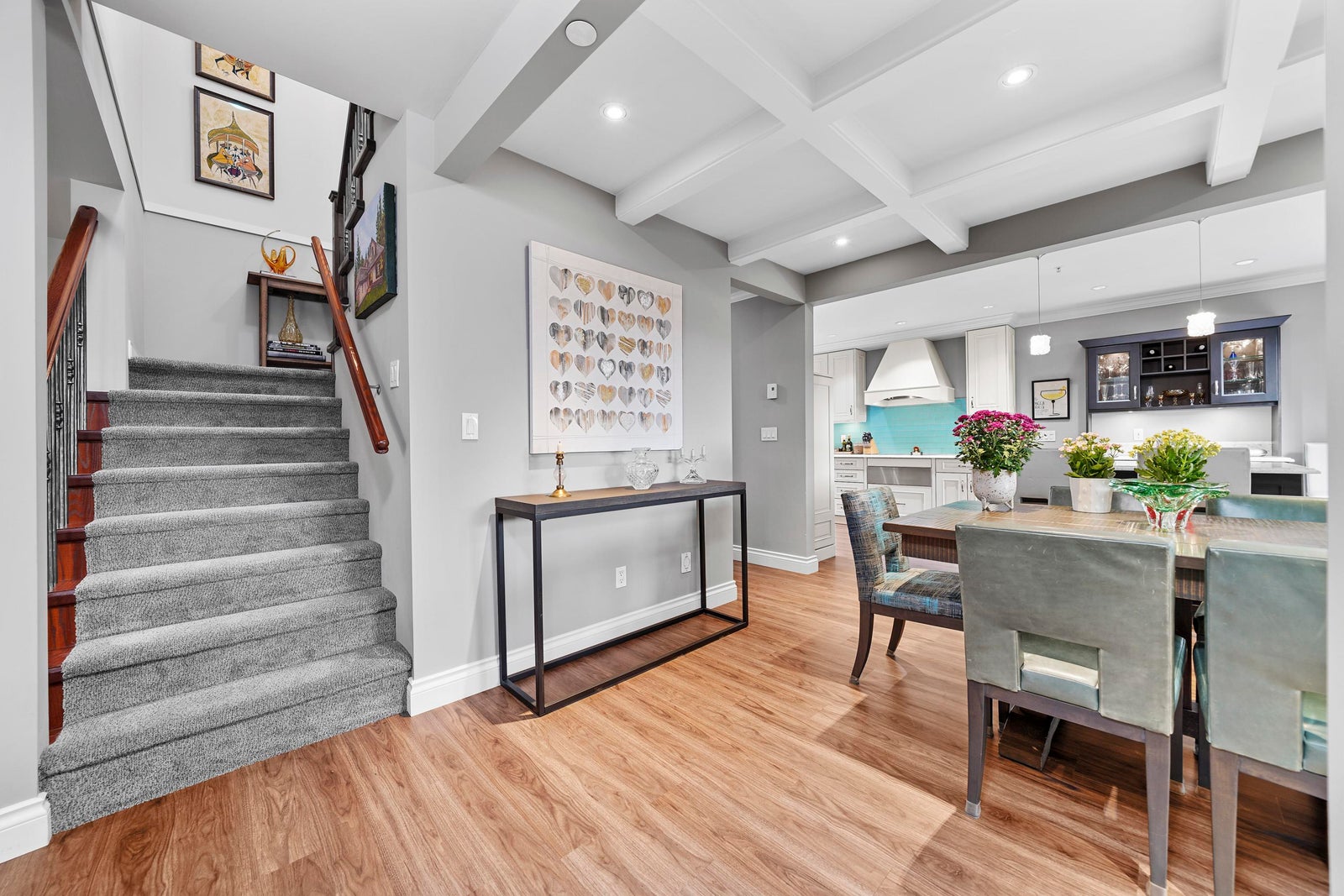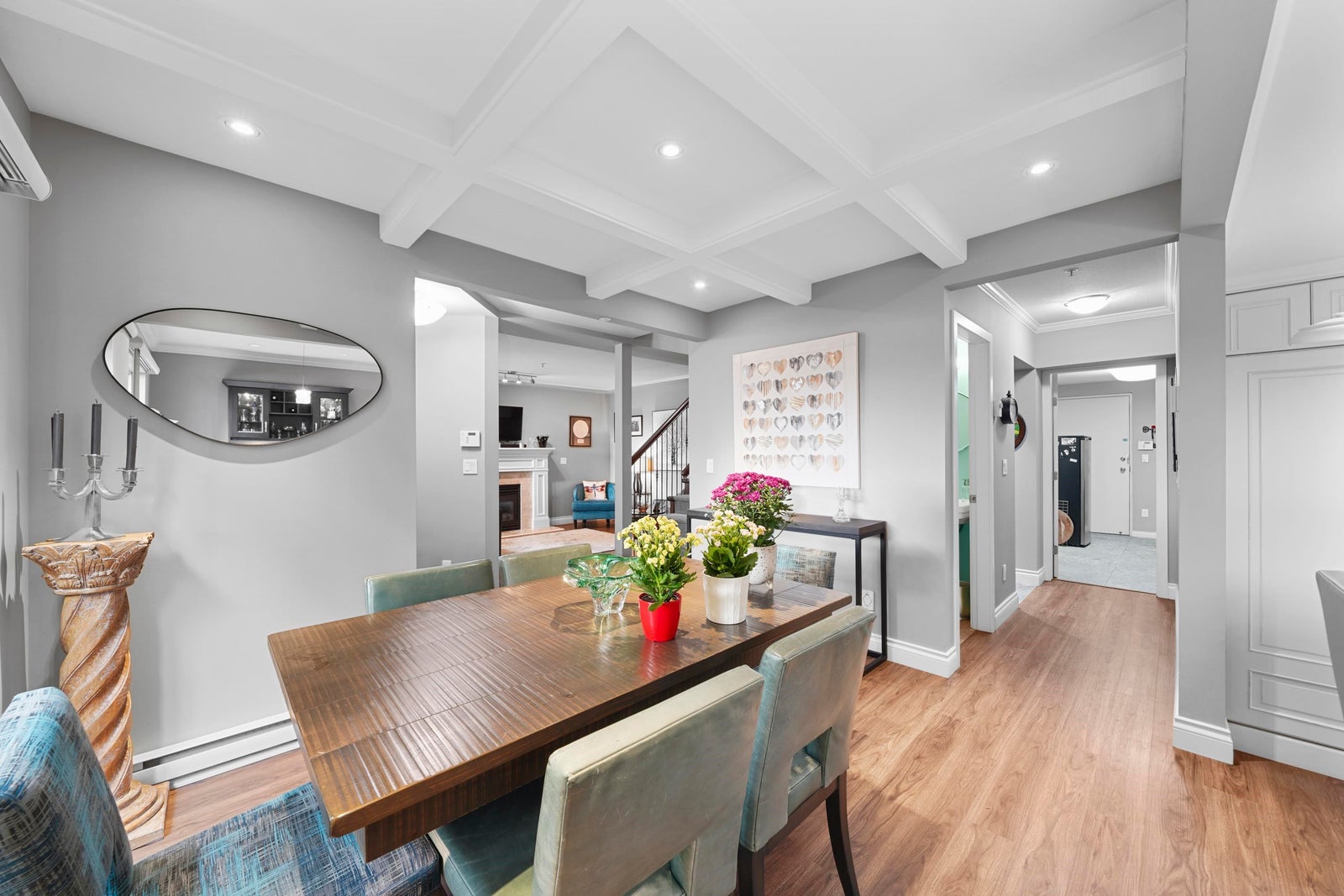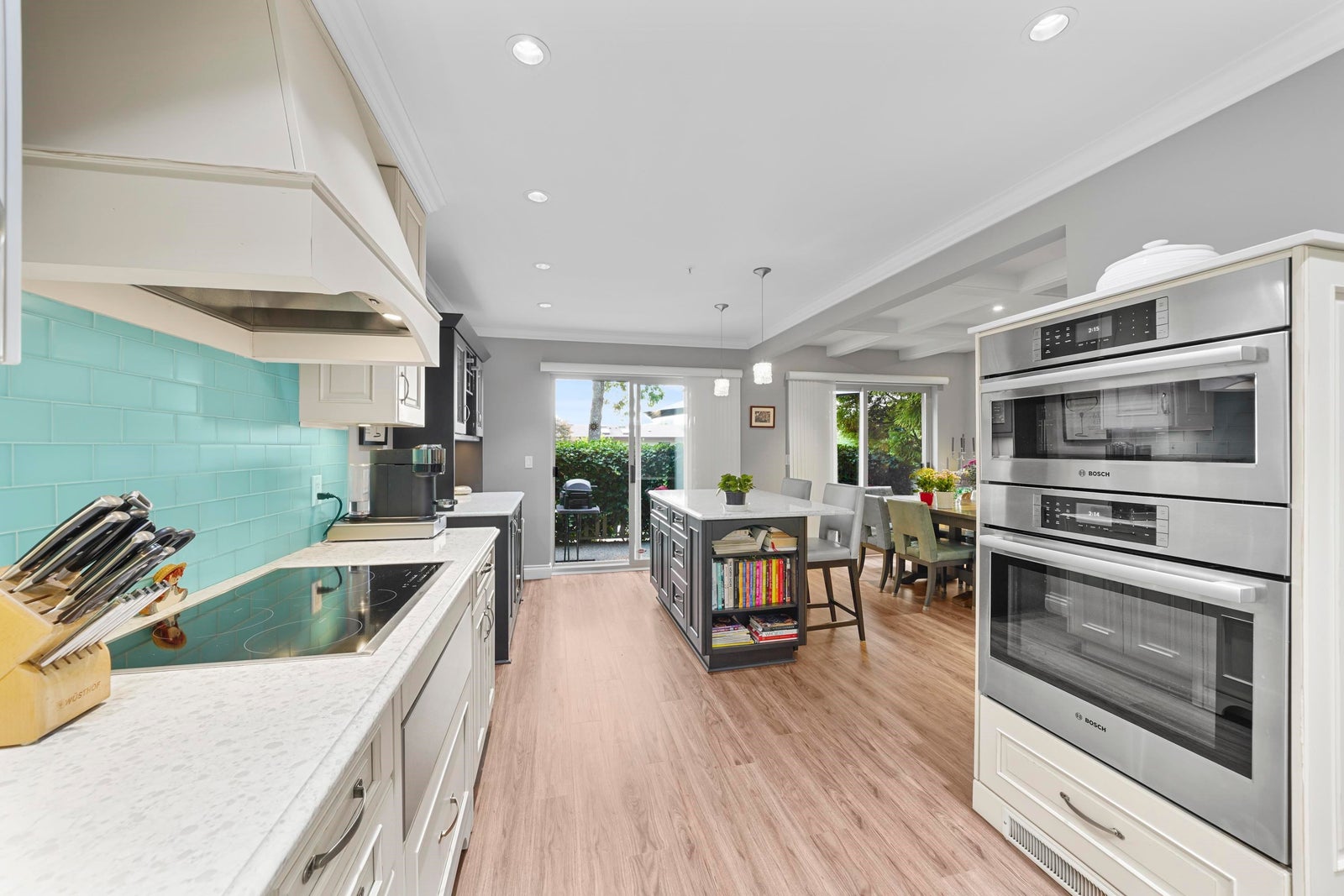 Discover a rare 3 bed/3 bath townhouse in the heart of Lower Lonsdale, where modern renovations meet a vibrant community lifestyle. One of only four homes fronting the complex, this unique residence feels like its own little house. The entertainer’s kitchen shines with high-end appliances, custom cabinetry, and a spacious island flowing into the dining area. Stylish updates include coffered ceilings, renovated bathrooms with heated floors, California closets, and new flooring. Enjoy seamless indoor-outdoor living with an oversized patio and the convenience of two parking spots at your door. Steps from cafes, restaurants, shops, and the Seabus, this home blends comfort, quality, and unbeatable walkability.
