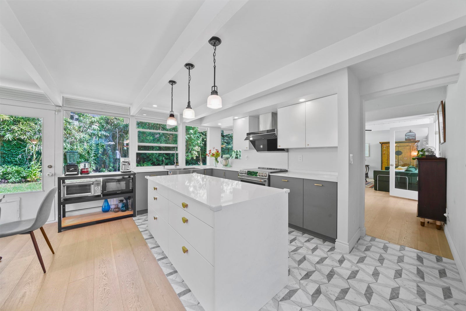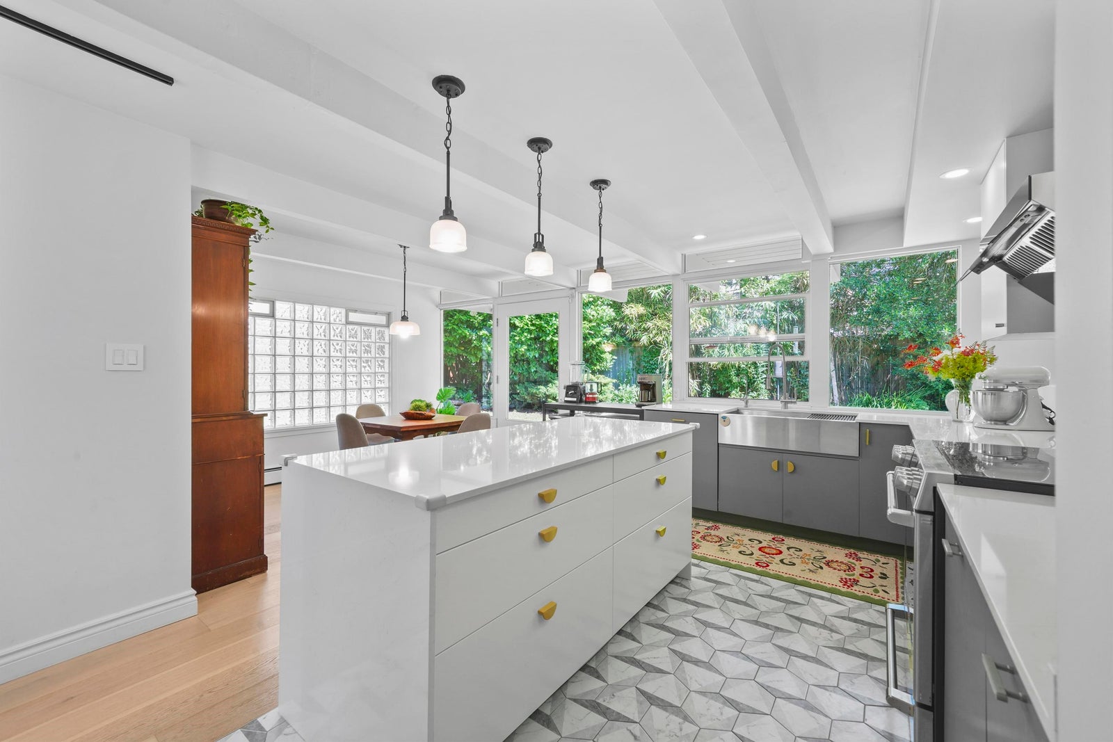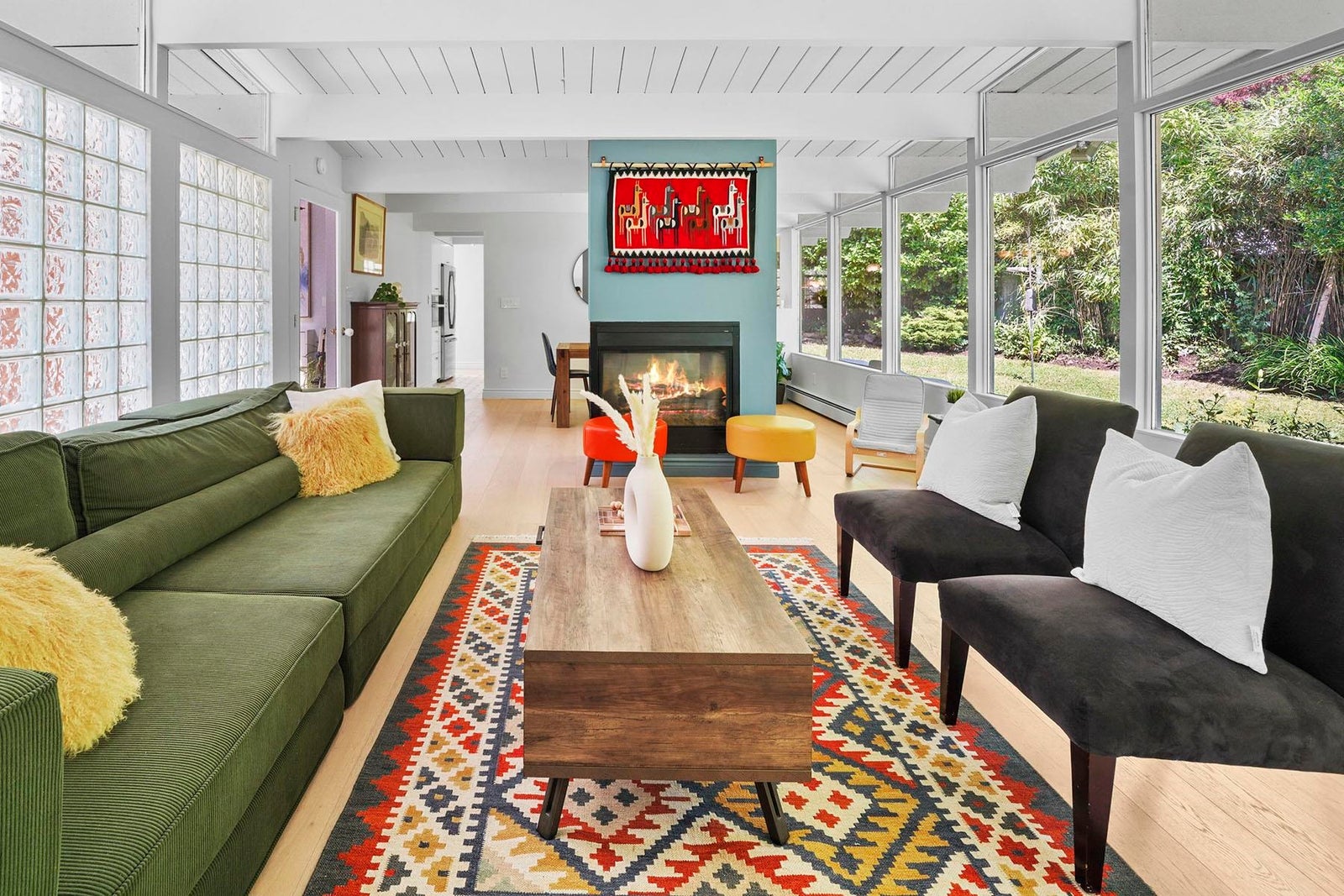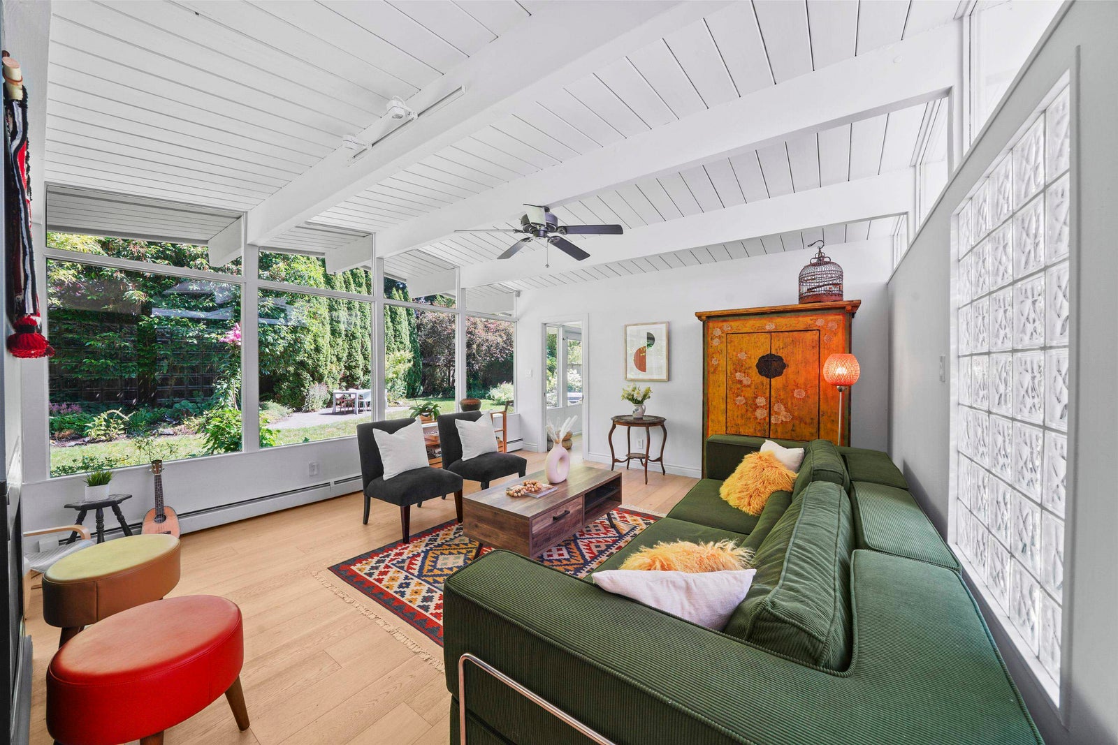Renowned designer and builder Bob Lewis created this quintessential West Coast Modern post-and-beam rancher for Dr. D. Gibson with a family of 10. Hidden among the lush private gardens and lawns of an 11,500 sf lot in Sunshine Hills, light pours through 20 large windows. The home has been thoughtfully renovated over time, most recently in 2020 with a kitchen both stylish and functional, Duro-Tuff membrane cool roof, and wide-plank flooring. Features also include a Miele combi-steam oven, 200A electrical service, 2-car garage with EV-ready receptacle, large shed, and drip irrigation for convenience. Grow food or flowers in raised beds within the landscape. Walk to Watershed Park. Easy access to Hwy 99/91. Catchment for IB program at Seaquam. Timeless design and modern living. Welcome home.