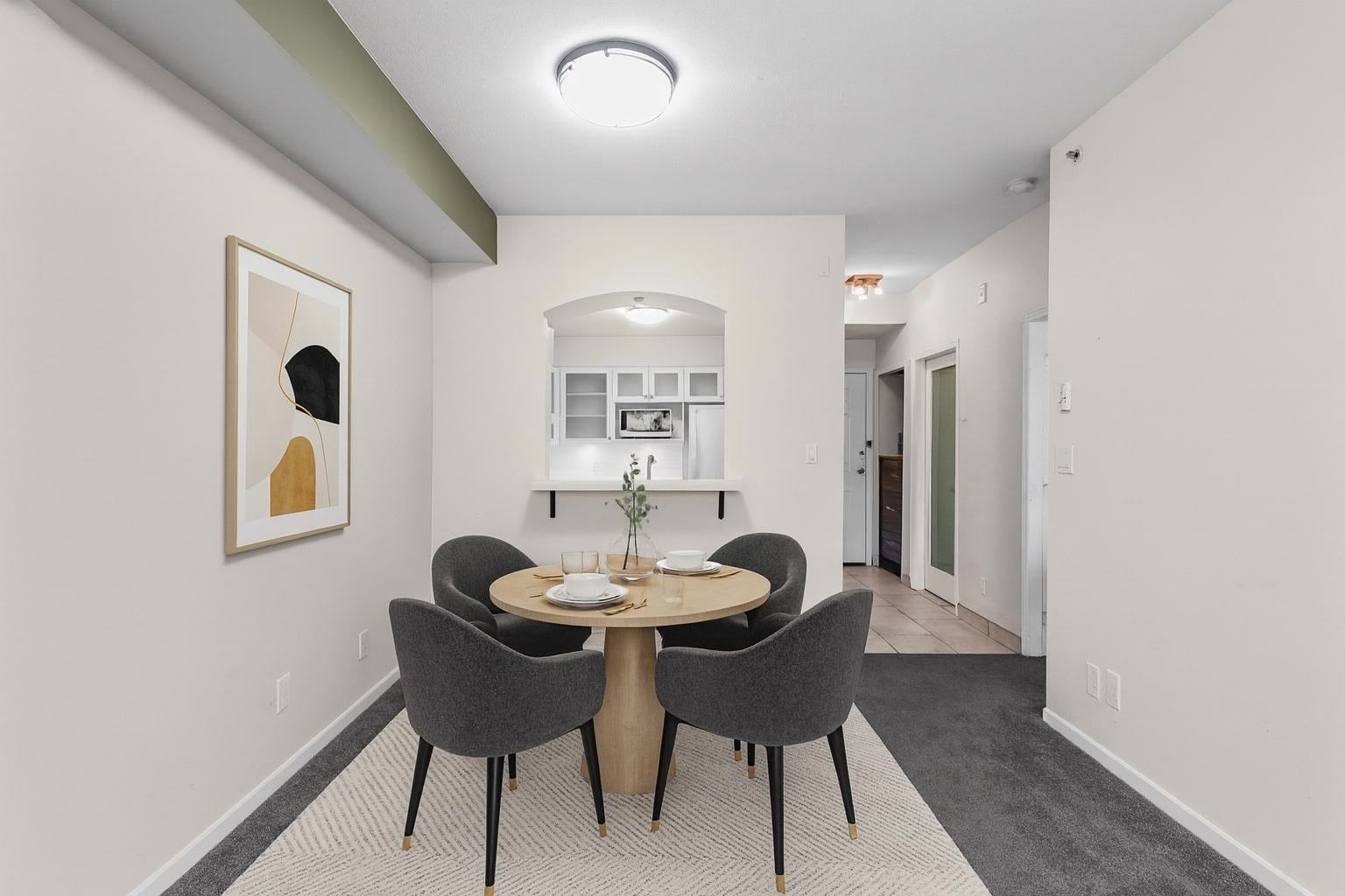 Welcome to The Windsong at Raven Woods! This 625 sq ft 1 bed, 1 bath condo sits on the 5th floor with peaceful north-facing views of the greenbelt. Lightly renovated and move-in ready, it features an open layout, gas fireplace, in-suite laundry, and a private balcony surrounded by nature. One parking and locker included. Maintenance fee covers gas and hot water. Enjoy a friendly, pet- and rental-friendly community with clubhouse and trails at your doorstep. Minutes to Parkgate Village, Deep Cove, golf, and Mount Seymour—this home blends forest serenity with everyday convenience.