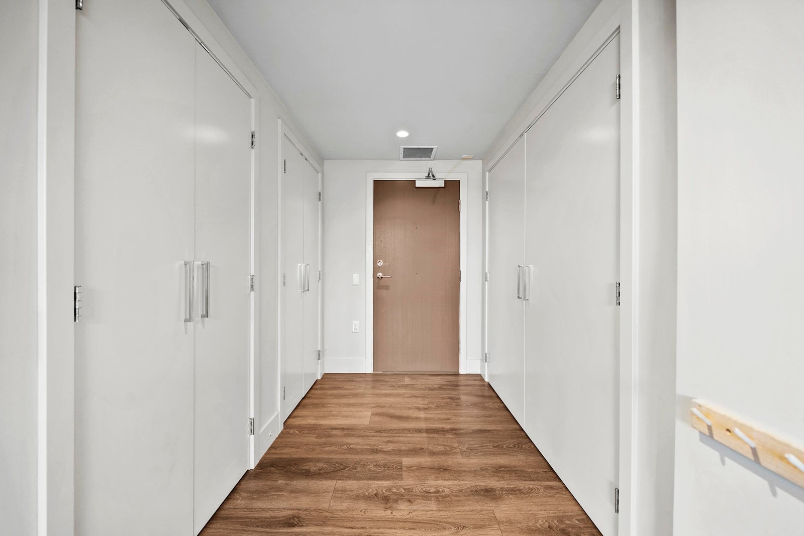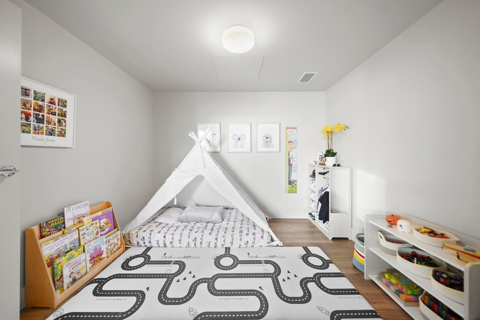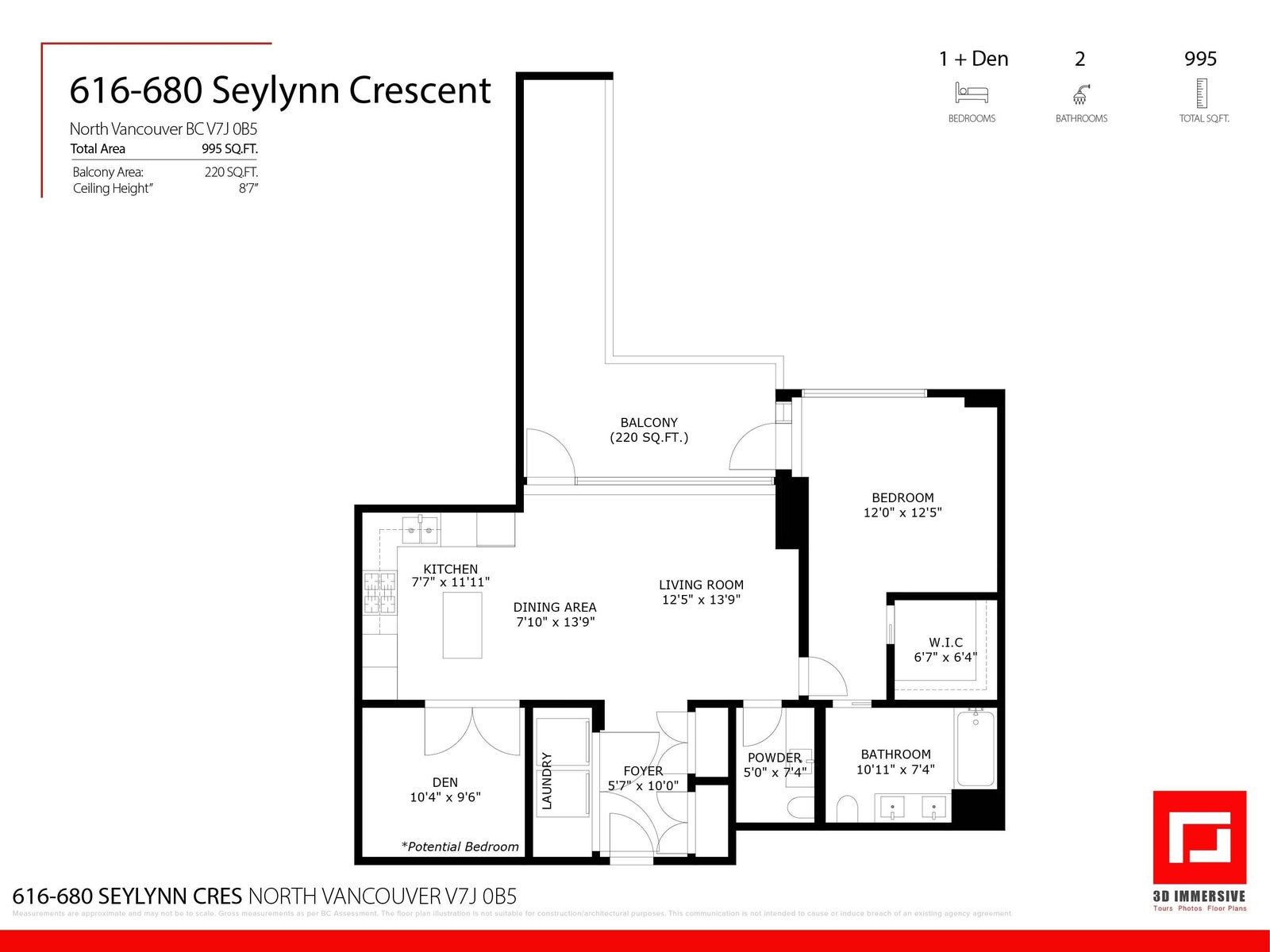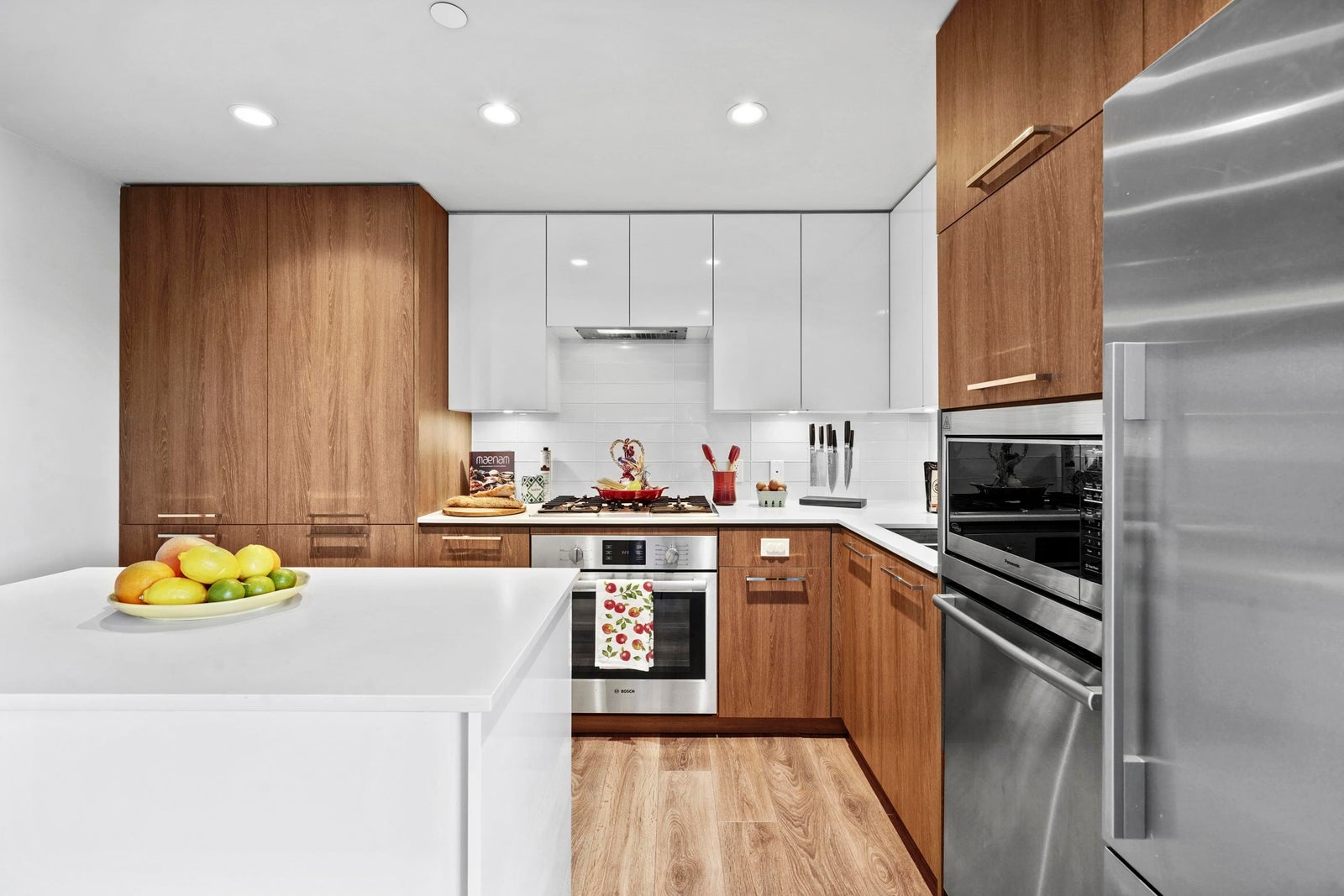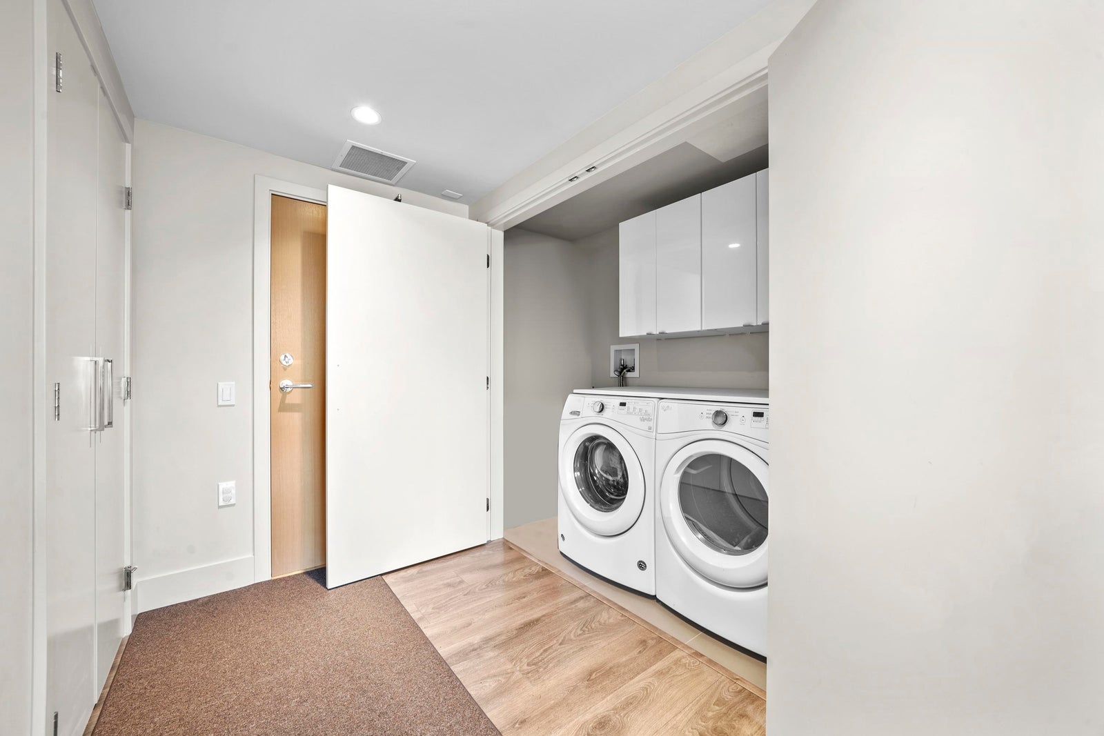 Resort-style living-rare North-facing home: where over-height ceilings & floor-to-ceiling triple pane windows showcase breathtaking mountain views! 1 of only 4 homes of this unique layout, features oversized rooms & expansive 220SF L-shaped balcony—the perfect place to enjoy the morning sunrise or unwind under the evening glow. Bright open-concept offers spacious primary bedrm w/ a walk-in closet & a spa-inspired ensuite complete w/ double sinks. Opposite side, a large den easily functions as a 2nd bedroom or home office, a powder room for guests. Chef’s kitchen w/ Bosch gas cooktop, Fisher&Paykel S/S refrigerator, modern backsplash, Quartz countertops & ample custom floor to ceiling cabinetry. A/C, private bike locker, wheelchair accessibility &more! Make this your own NorthShore retreat!