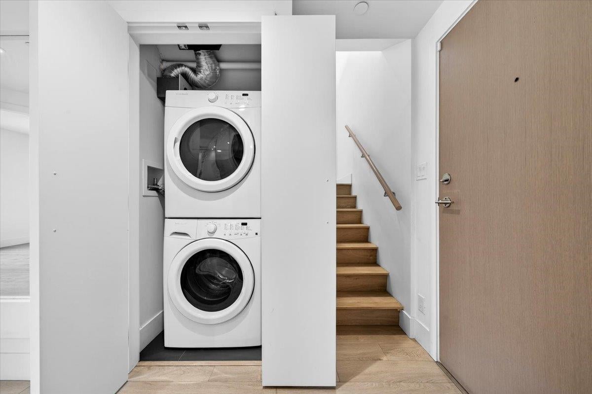 Welcome to this stunning 2 bed + den, 2 bath two-level home at Compass in Seylynn Village. Offering 1,130 sq.ft. of modern living, the open-concept main floor features a sleek kitchen with quartz counters, stainless steel appliances, and a large island flowing into bright living and dining areas. Step out to a spacious 210 sq.ft. terrace perfect for entertaining. Downstairs offers two bedrooms, including a generous primary, plus a versatile den ideal for a home office. Enjoy in-suite laundry, contemporary finishes, and access to the Denna Club with pool, gym, sauna, and more. Steps to parks, trails, and easy highway access. Please note that some photos are virtually staged.